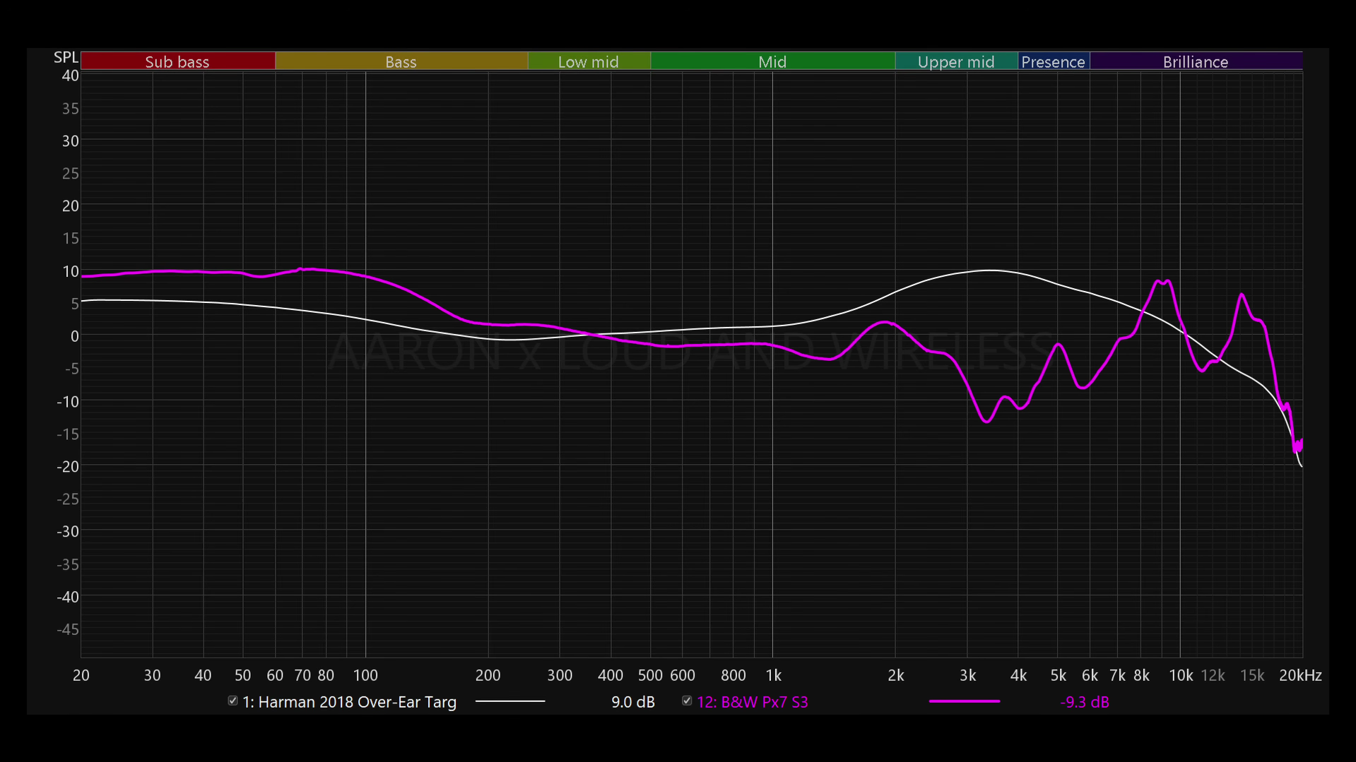 The Bowers and Wilkins Px7 S3 is one of the best sounding headphones. It’s a little more bass boosted than the Harman preference curve and more sculpted in the upper mids and highs to give a crisper vocal signature. But what I really like about them is how clarifying they sound.