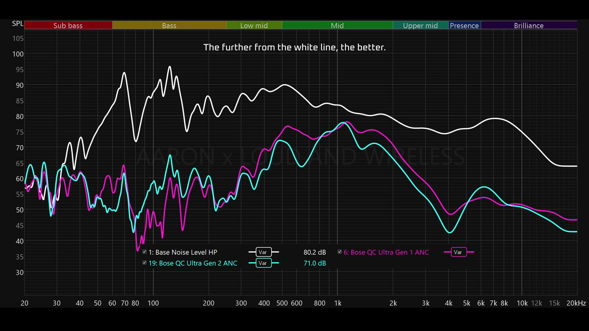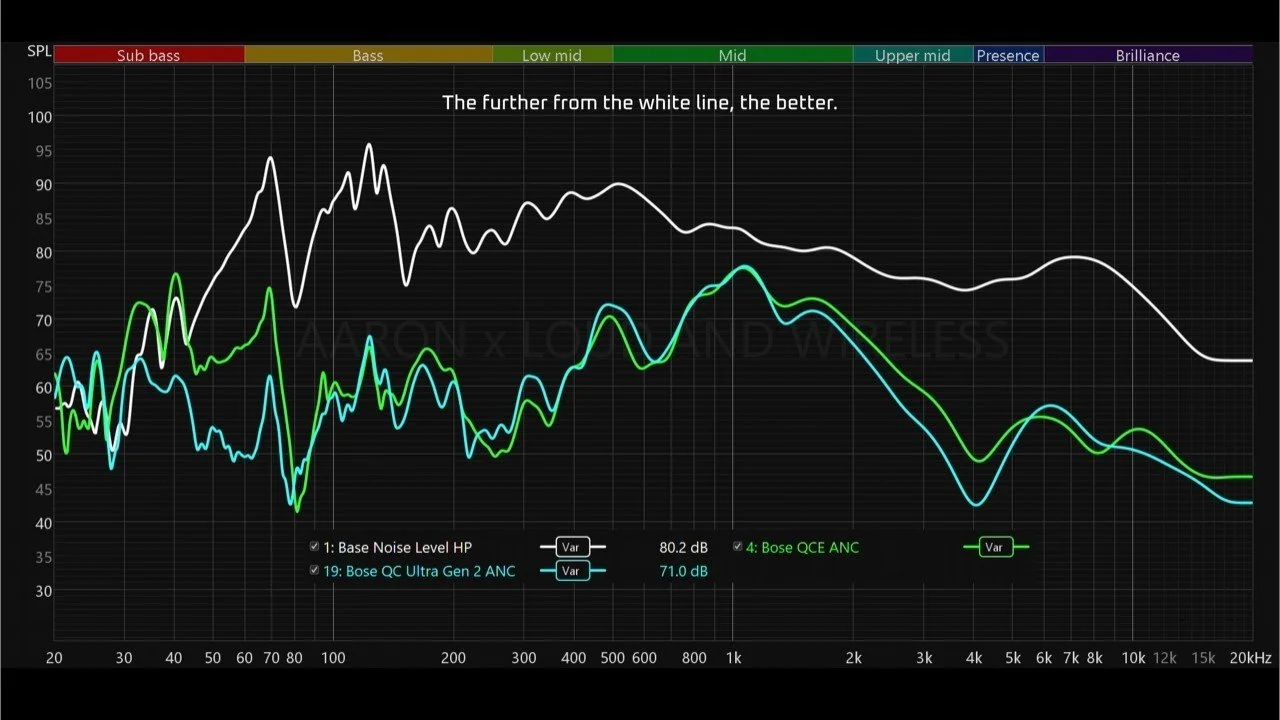 As for the Ultra 2’s active noise canceling, it’s not an upgrade, not a downgrade, but a sidegrade over Gen 1. We can see that Gen 1 is quieter in the low frequencies, so it could be more effective against loud droning noises, but Gen 2 is quieter in the mids and highs.