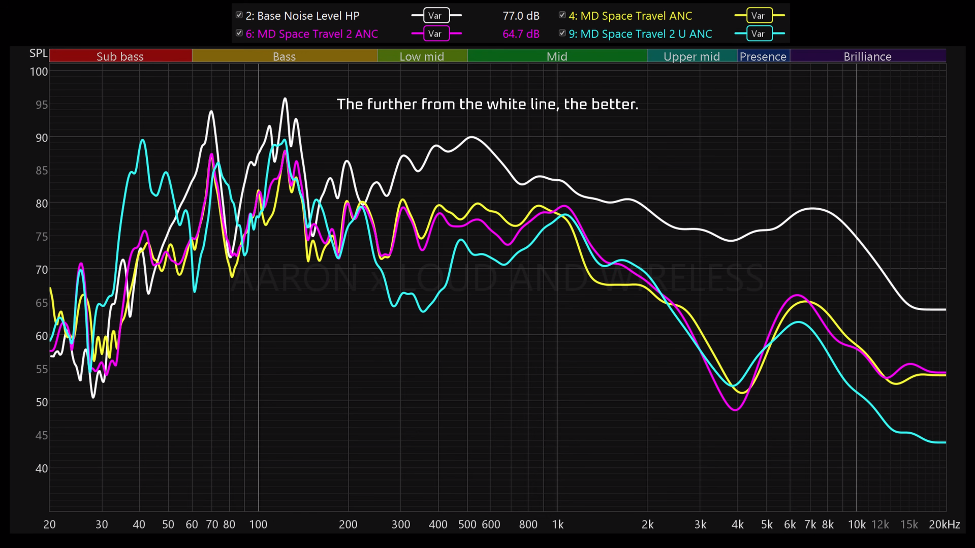 In terms of active noise canceling, the Space Travel 1 and 2 are quite identical in terms of noise canceling performance, and the Space Travel 2 Ultra is quieter. As you can see in these measurements, it cancels more in the upper bass to lower mids region compared to the Space Travel 1 and 2, which is where humans are generally more sensitive to noise.