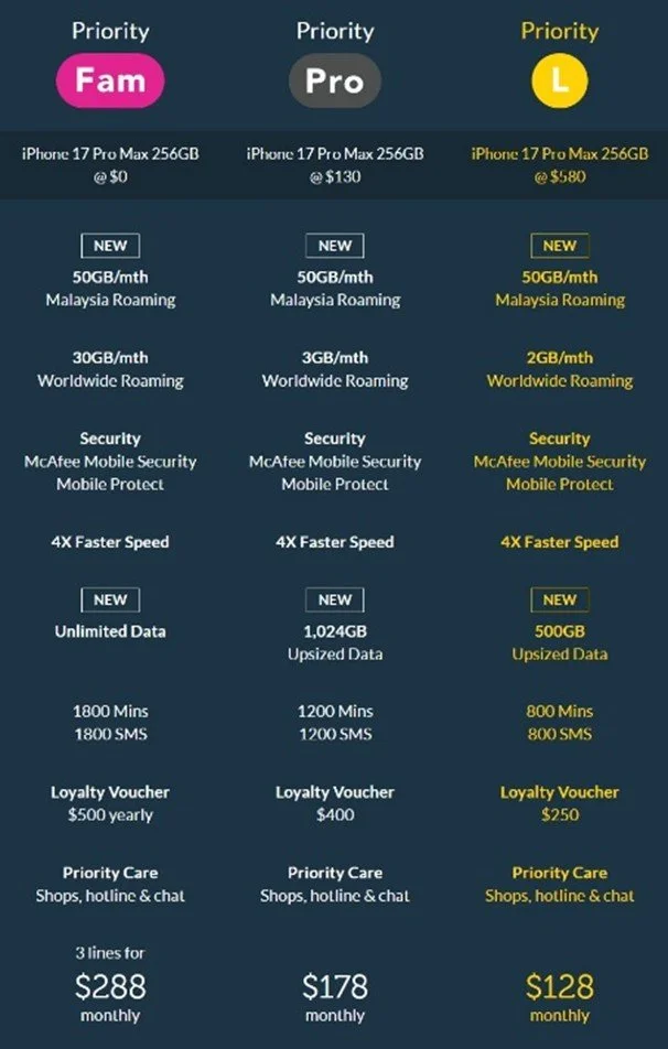 Note that these SIM-Only Priority plans get the same benefits as the regular ones, so the 4X speeds, dedicated lanes, Mobile Protect and upsized local and Malaysia roaming data all applies as well.